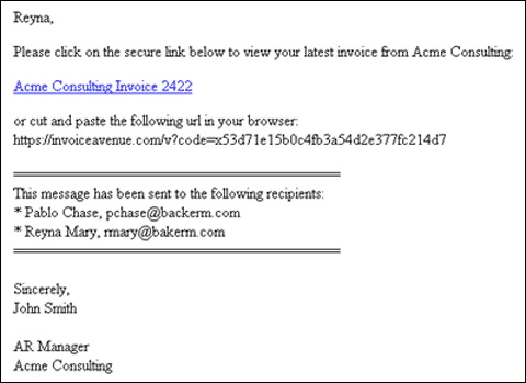 - Your customer gets a simple email with a unique, secure link to his or her invoice.
