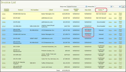 - Marking invoices as paid with a single click. (Paid invoices are still available by changing your filter on the invoice list.)